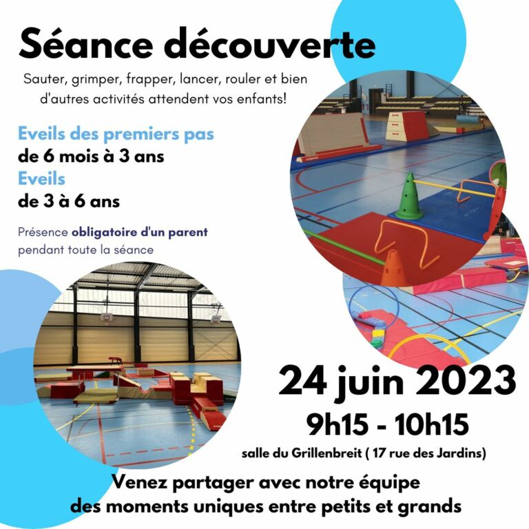 La Gymnastique et Eveil Colmar Club vous invite à une séance d'essai de l'éveil et de l'éveil des premiers pas.